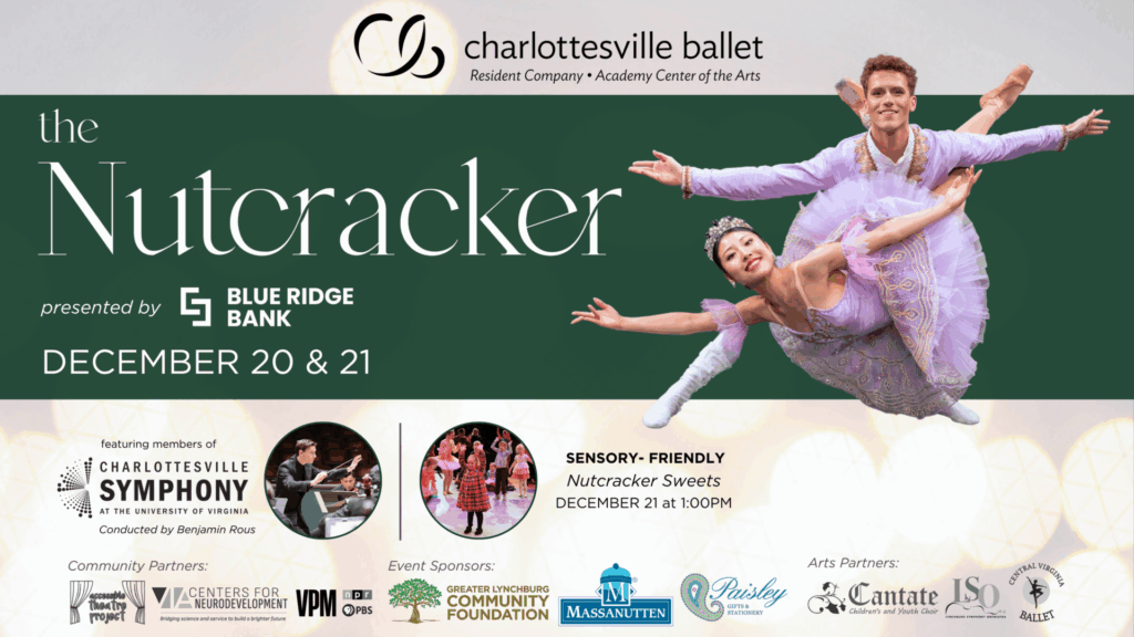 Step into a world of holiday magic as Charlottesville Ballet returns to Lynchburg with The Nutcracker— a holiday tradition favorite, presented by Blue Ridge Bank!