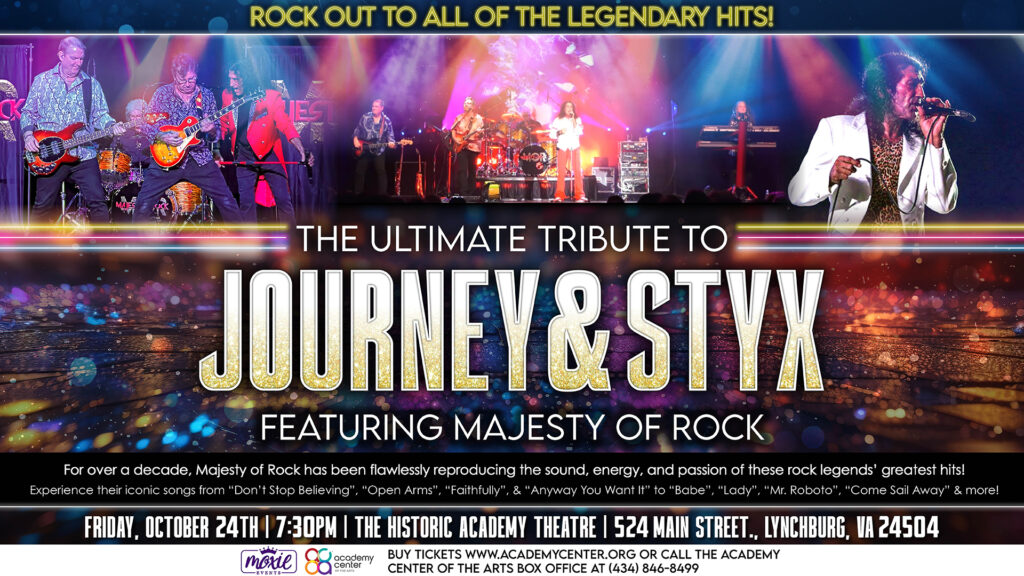 For over a decade, Majesty of Rock has been flawlessly reproducing the sound, energy, and passion of the rock legends’ greatest hits! Experience their iconic songs from “Don’t Stop Believing”, “Open Arms”, “Faithfully”, & “Anyway You Want It” to “Babe”, “Lady”, “Mr. Roboto”, “Come Sail Away” & more!