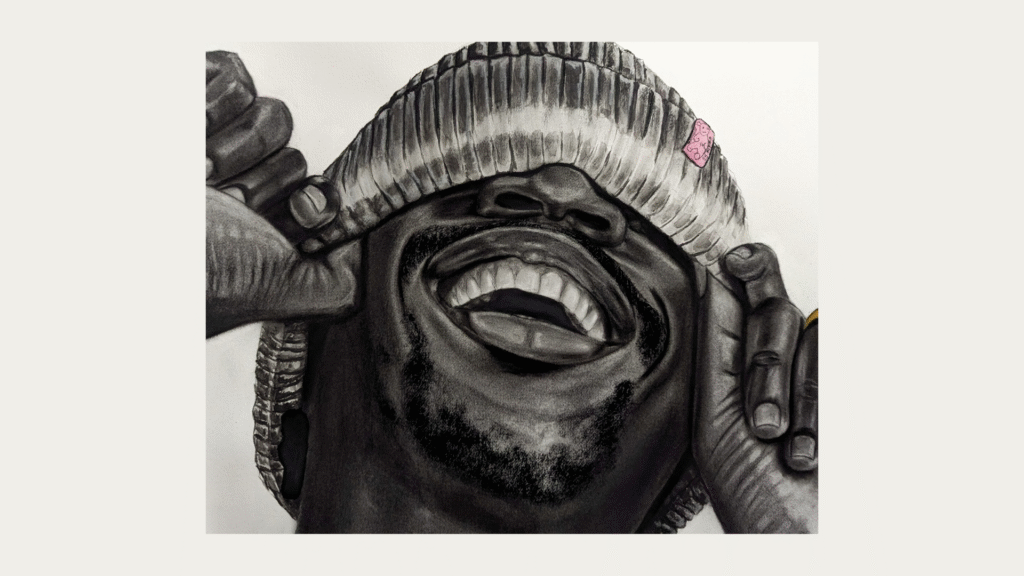 “For a bit too long, Black Joy and Black Beauty have been placed in the background by society as an ambient noise meant to be forgotten. We are often reminded of our plight and struggles to be seen as humans and nothing less. This body of work is a celebration of black beauty. My goal with these charcoal drawings was to highlight each figure’s beauty and show a glimpse of the everyday struggle through their facial expression, lighting, and titles.”