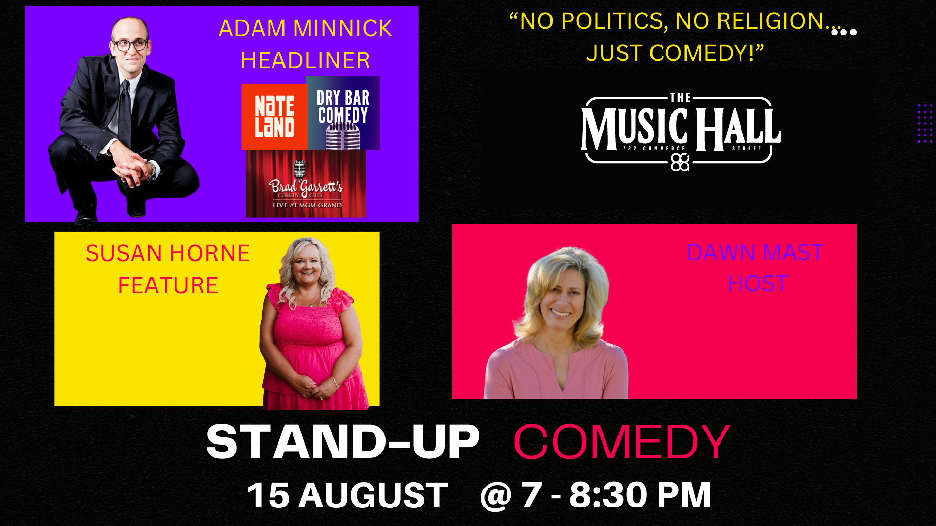 NO POLITICS, NO RELIGION…JUST COMEDY Featured August 15 @ 7:00 pm - 8:30 pm The Music Hall @ 722 Commerce Street 722 Commerce St, Lynchburg, VA, United States $25 – $28