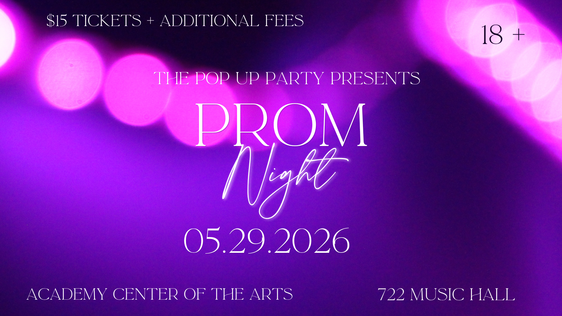 Pop Up Party Prom Featured May 29 @ 7:00 pm - 10:00 pm The Music Hall @ 722 Commerce Street 722 Commerce St, Lynchburg, VA, United States $15